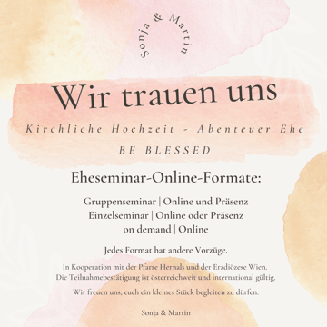 Wir möchten uns nochmal bei euch bedanken für das tolle neue Format das ihr kreiert habt um das ehe Seminar zu Hause zu machen! Die Videos waren super und man merkt dass ihr eure ganze
